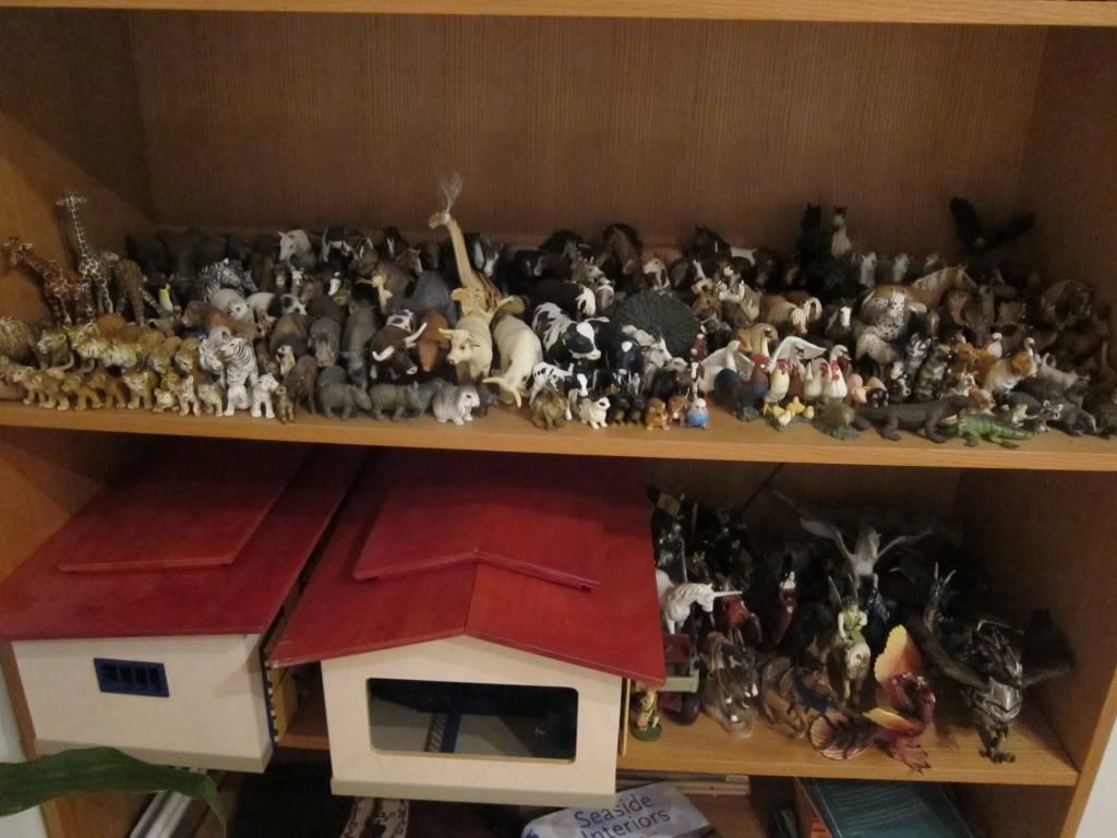 Meidän hylly. Lapsuudessa keräily tosin keskittyi lähinnä hevosiin ja kuvasta puuttuu muutama ylemmällä hyllyllä majaileva lohikärmes sekä vankkurit, maastoauto, kuljetuslootat ja eläinlääkärin preeriamökki. Ja jotain sälää ja ukkeleita. + PAHKASIKAVAUVA ON HÄVINNYT ja vihreä undulaatti! D: